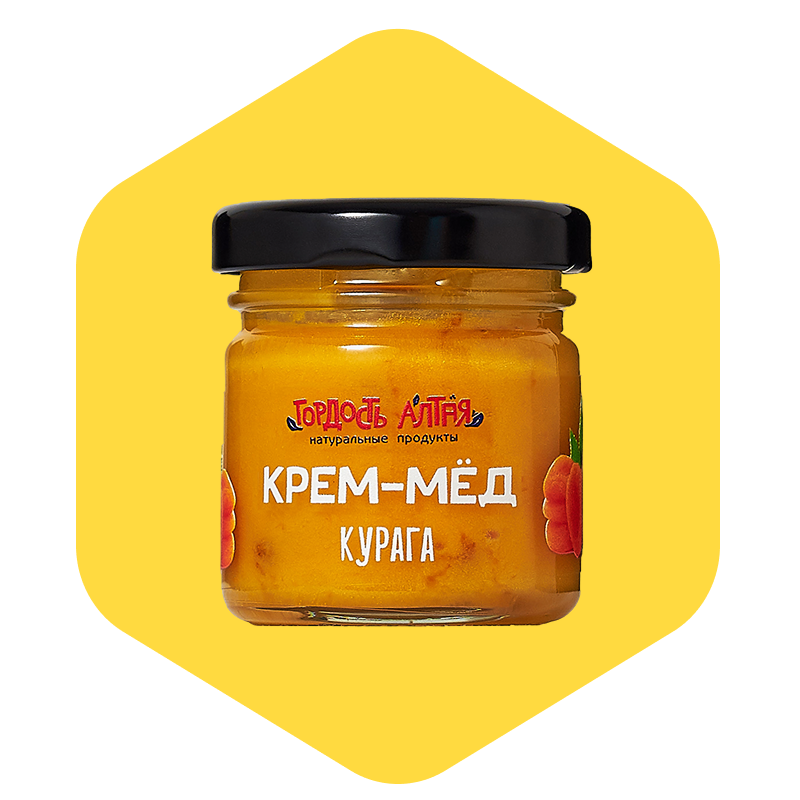 Крем-мёд с курагой — это натуральный десерт с ярким фруктовым вкусом, мягкой кремовой текстурой и выраженной природной сладостью. В основе — взбитый цветочный мёд из Алтая, в который добавлены фрагменты натуральной кураги (высушенного абрикоса), измельчённой или лиофилизированной. Курага придаёт мёду мягкую фруктовую сладость, лёгкий аромат абрикоса и обогащает продукт пищевыми волокнами, калием, магнием и витаминами. Такой крем-мёд — это одновременно и десерт, и функциональный продукт, который можно употреблять как самостоятельно, так и в составе завтраков и перекусов.